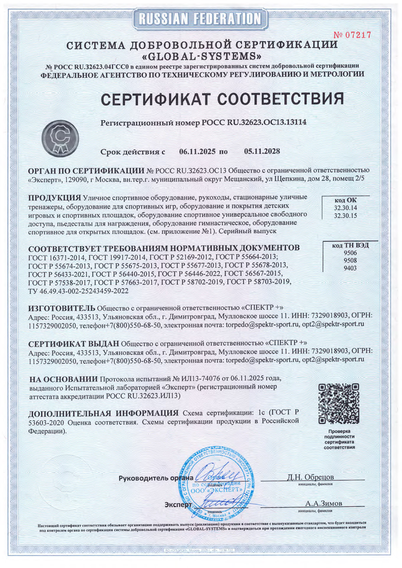 Сертификат соответствия (уличное спортивное оборудование)