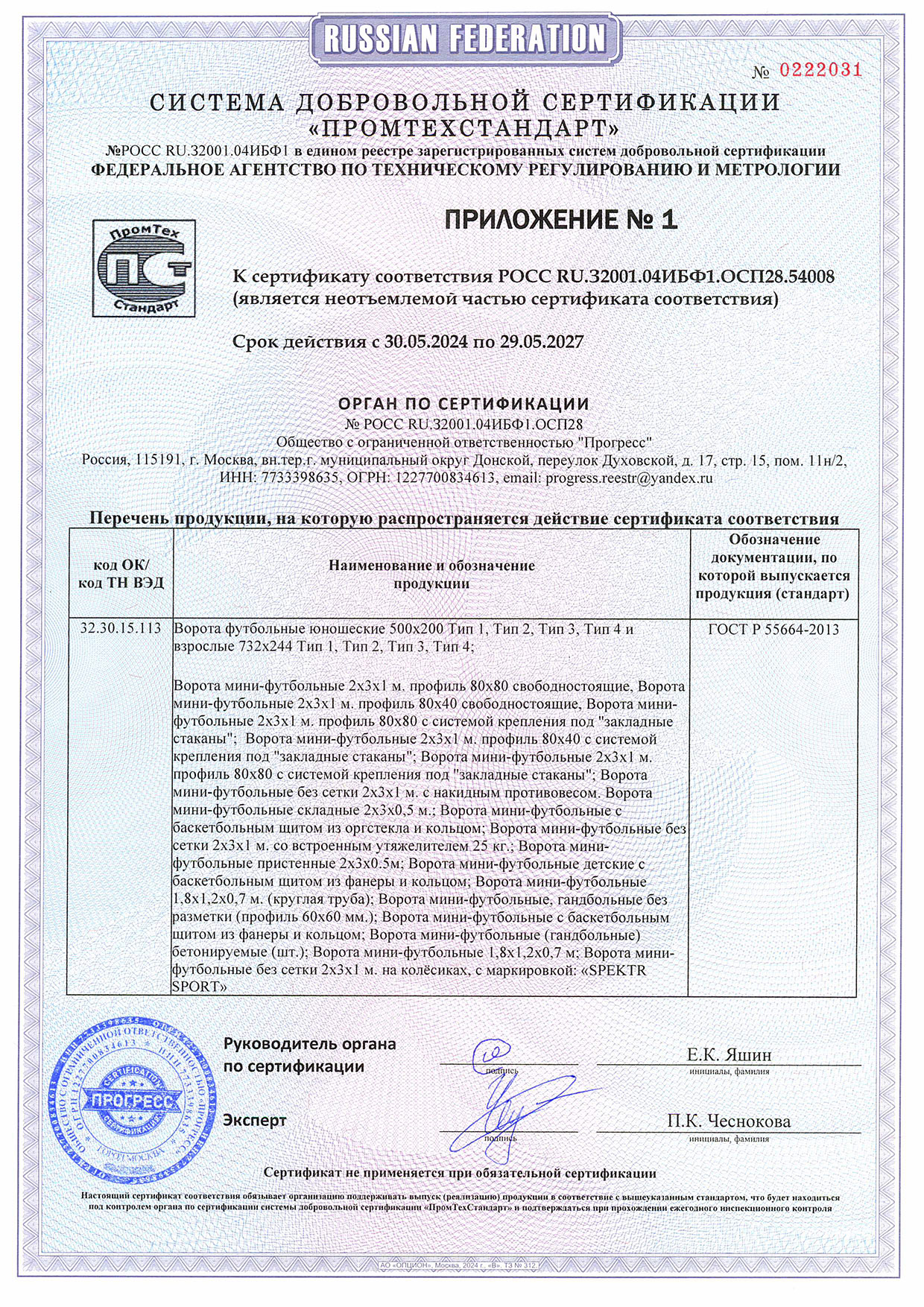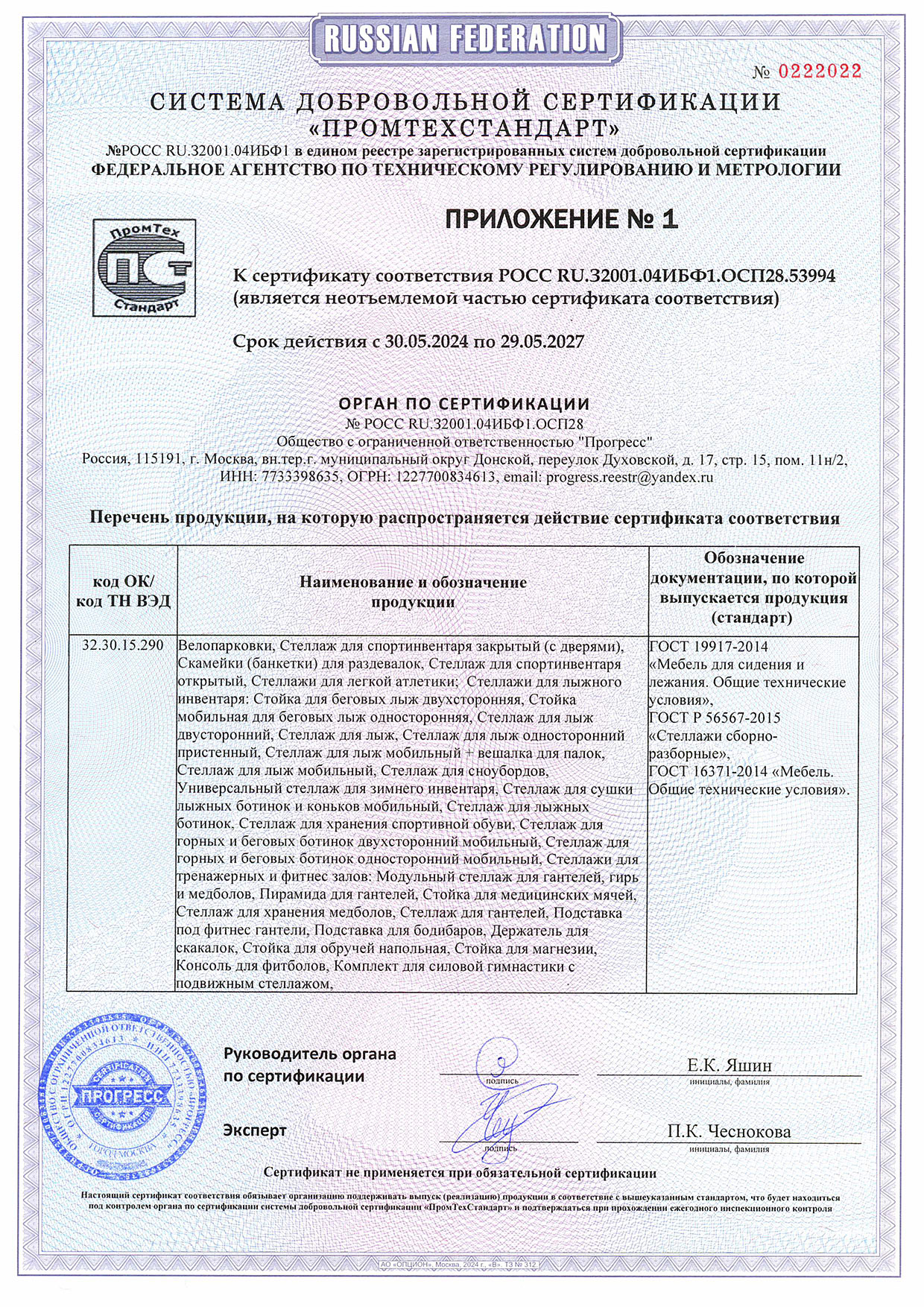 Сертификат соответствия инвентарь 2